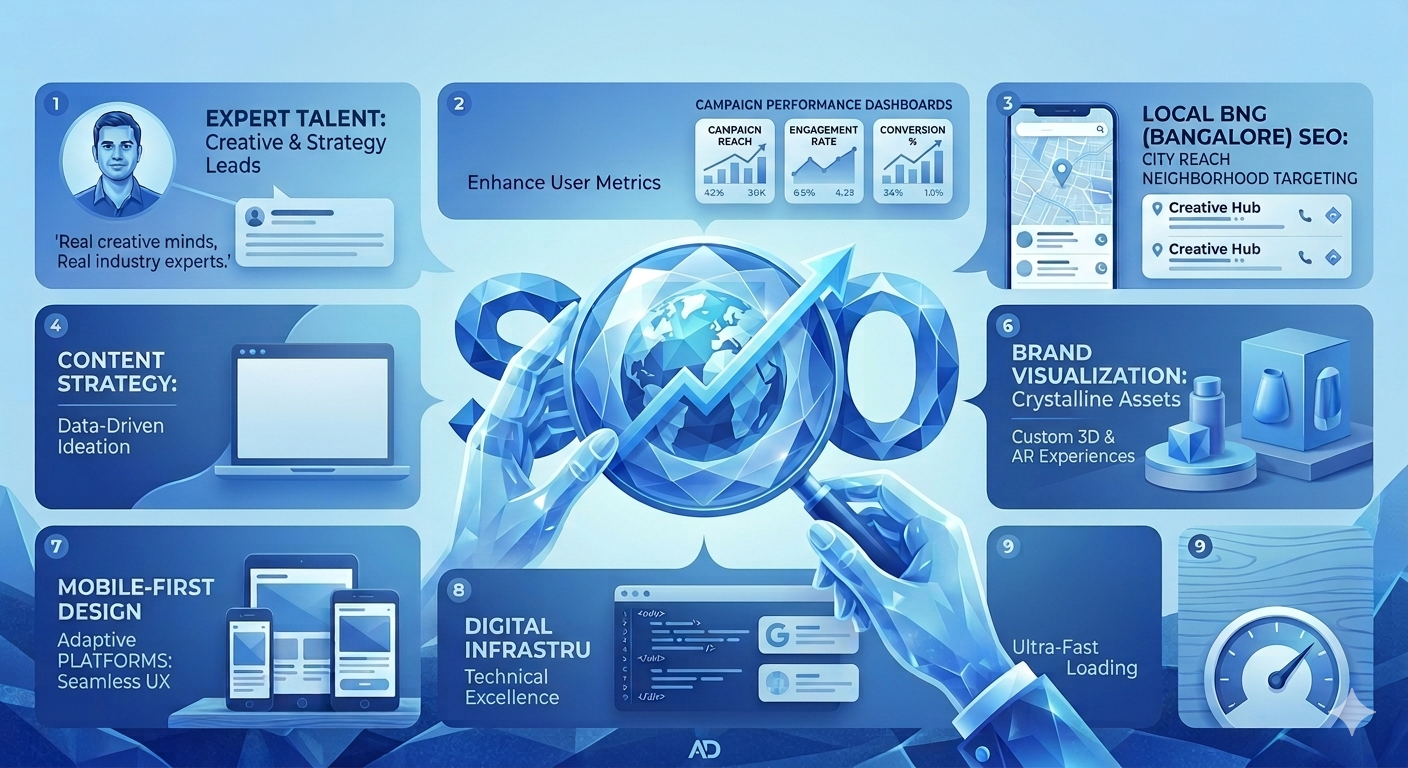 We deliver high-performance digital marketing that bridges the gap between brands and audiences. By blending technical SEO with creative storytelling, we transform digital touchpoints into growth, ensuring your brand leads the conversation in an evolving ecosystem.